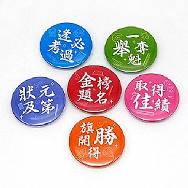 考試季、升學季必備的 激勵語錄胸章,以亮眼的馬卡龍色系搭配手寫字體設計,每一款都象徵祝福與好運。從「金榜題名」、「狀元及第」到「必定考過」、「旗開得勝」,讓努力中的學生多一份鼓勵,也讓送禮的人傳遞真心