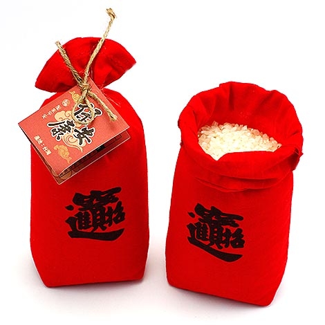 過年想要送一點不一樣的嗎?快來看看這款「袋米發財」(帶你發財),紅色充滿喜氣的布袋,上面印有招財進寶的祝福,內裝有台梗九號冠軍米,兼具實用及美味,更帶有你滿滿的祝福。
