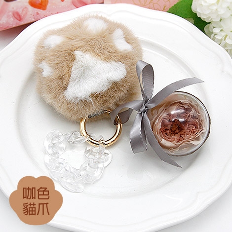 永恆寵愛 永生花扭蛋絨毛貓掌掛飾