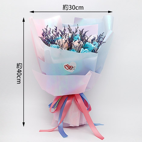 台北禮物專賣店推薦有逼真的花型還有淡淡的花香不用擔心鮮花觀賞期,香皂花玫瑰花束是另一款的好選擇,藍色玫瑰花和粉色玫瑰花加上乾燥的卡斯比亞,22朵的玫瑰花語是雙雙對對希望有情人雙雙對對圓滿幸福,訂購時加上卡片留言隨花束一起附上心願的卡片。