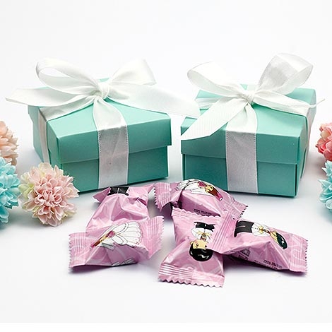 風靡萬千女性的蒂芬妮喜糖盒回來囉!外盒是全世界最幸福的藍-蒂芬妮色,搭配白色的緞帶,迅速擄或賓客的歡心,讓每個人愛不釋手,迫不急待的想知道裡面裝了是甚麼樣的小禮物。當作婚禮小物的桌上禮、送客禮,或者是活動小禮物,都會是最吸睛的選擇!