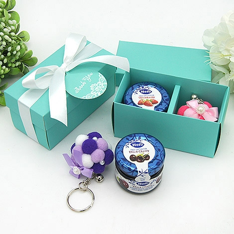 風靡萬千女性的蒂芬妮喜糖盒,外盒是全世界最幸福的藍-蒂芬妮色,搭配白色的緞帶,迅速擄或賓客的歡心,讓每個人愛不釋手,迫不急待的想知道裡面裝了是甚麼樣的小禮物。當作婚禮小物的桌上禮、送客禮,或者是活動小禮物,都會是最吸睛的選擇!