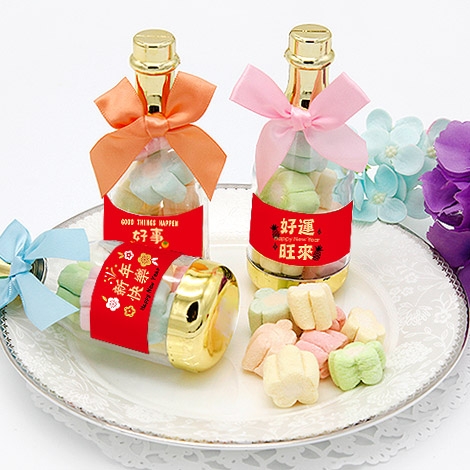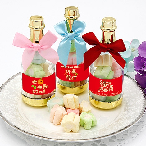 香檳杯閃亮亮,慶祝的日子禮開瓶香檳歡慶,香檳瓶內裝上花形的棉花糖,小巧的蝴蝶結特別好看,婚禮活動送客禮、生日宴會的生日禮物、開幕送給到訪來賓,適合了,您喜歡的香檳瓶喜糖-棉花糖歡迎您選購,網路訂購門市購買推薦婚禮小物棉花糖。