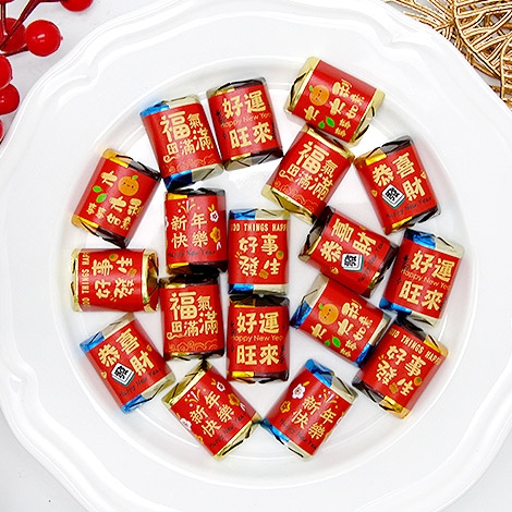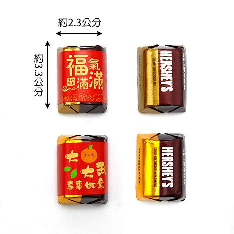 這款 Hershey's 金磚巧克力為您的農曆新年慶典增添一份甜蜜與喜慶。巧克力外層包裹金色、銀色外包裝,並搭配精美獨家設計的吉祥喜慶祝福貼紙,閃耀的色彩讓它們成為任何場合中的焦點。無論是作為新年活動中的小點心、伴手禮,還是聚會上的零嘴,這些迷你巧克力都能讓現場更添年味,喜氣洋洋。