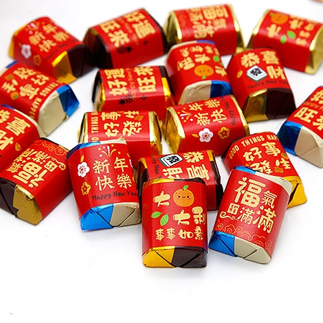 金磚巧克力為您的中秋節慶活動增添一份甜蜜與歡樂。巧克力外層包裹著精美的獨家設計的中秋節圖案包裝,金色、紅色與紫色的組合讓它們在任何場合中都閃耀奪目。無論是作為中秋活動上的小點心、伴手禮,還是節慶聚會上的零嘴,這些迷你巧克力都能讓活動更加充滿節日氛圍。
