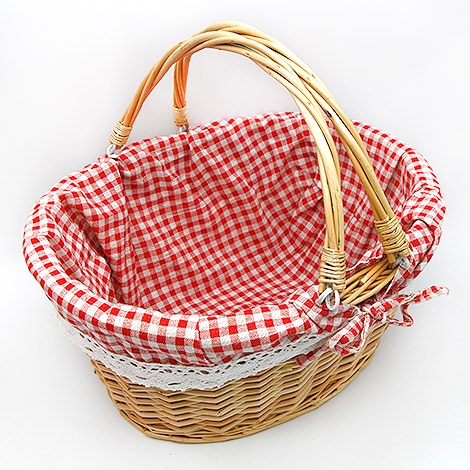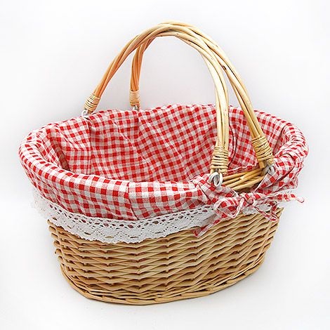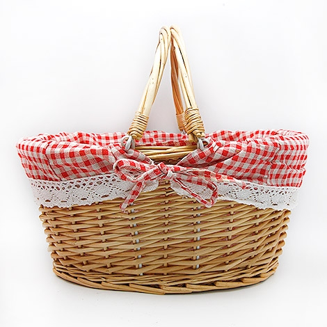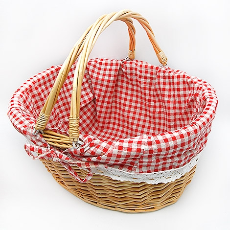 藤編提籃、格子襯布