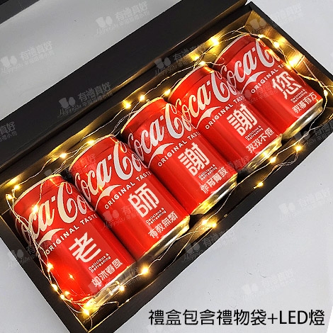 把感謝排成一整盒的儀式感!五罐經典紅罐整齊擺入黑色禮盒,一開盒就看到「教師節快樂/謝恩師」等祝福字樣(4款字樣可選),超好拍、超有梗。班級合贈、社團與福委統一送老師最省心;課後小聚或辦公室驚喜開箱,也能一起舉罐乾杯說聲「謝謝老師」,是最不會出錯的教師節禮物。330ml 易開罐冰鎮即飲,禮盒可搭配提袋與LED小燈點綴,從開盒到拍照都充滿儀式感——把敬意與祝福,裝進每一口清爽氣泡裡。