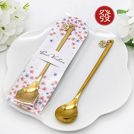 一勺在手,好運加倍。「發/財」鏤空圓牌隨勺輕晃,象徵事業亨通、荷包滿滿。長柄設計順手好攪,辦公室沖飲或家中下午茶皆實用。作為開幕送禮、商務小禮或年節贈禮特別到位,讓清脆的攪拌聲,攪出新一年的好氣象與小小富足。