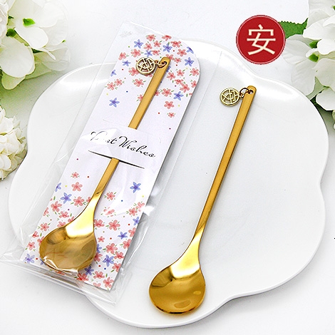 以溫潤金色勺身搭配「福/吉/安」鏤空圓牌,舉手投足都藏著祝願:福氣臨門、吉事常在、平安相隨。長柄好攪拌,無論是咖啡、奶茶或甜品皆優雅稱手;透明禮盒到手即送,適合節慶贈禮、活動小物與日常自用,讓每一次攪拌,都為生活添一份好兆頭。