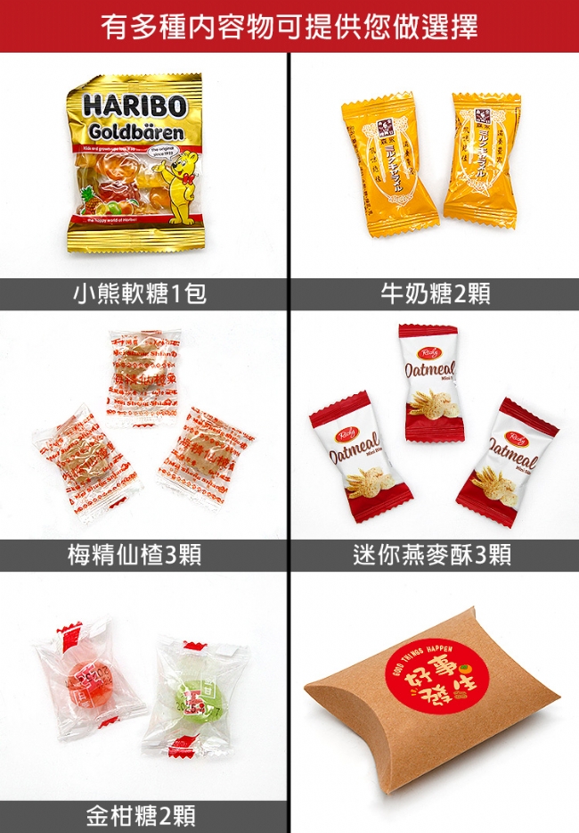 小熊軟糖、牛奶糖、梅精仙楂、迷你燕麥酥、金柑糖多款可選