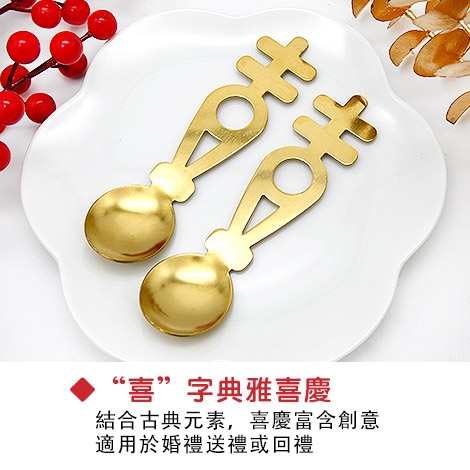 婚禮小物專賣店全新推出創意雙囍字不鏽鋼湯匙,真心推薦您精緻不鏽鋼湯匙,鏡面拋光,多次打磨,光滑邊緣及表面,易清洗,是不可或缺最划算的婚禮小物,特別適用於喝茶禮或送客禮,也可以另外製作客製化貼紙,當做節日員工贈品、開幕送禮也很適合,婚禮小物專賣店推薦您!