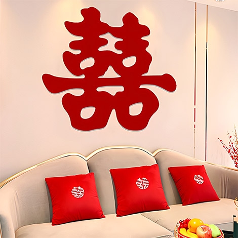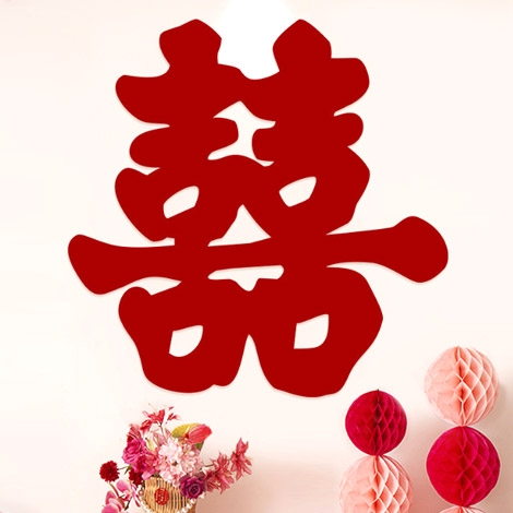 採用高品質不織布材質製作,觸感柔韌、輕巧不厚重,貼附牆面時平整服貼,不易皺折、不易破損,相較紙質囍字更耐用,也更適合專業婚禮佈置長時間使用。材質不反光,拍照與錄影時不會產生刺眼反射,特別適合婚禮攝影、迎娶紀錄與婚宴現場拍攝。