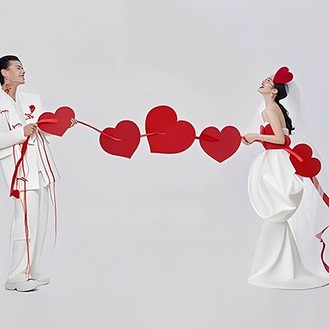 以浪漫紅色愛心串連,象徵「同心同行、心心相印」,整體畫面感強烈、視覺效果突出,非常適合婚禮場佈與主題活動使用,是場佈人員打造浪漫氛圍的加分道具。