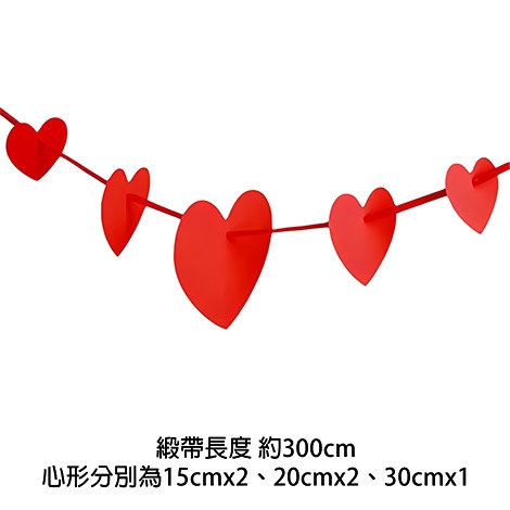 1組(內含緞帶約300cm+愛心15cm*2、20cm*2、30cm*1)