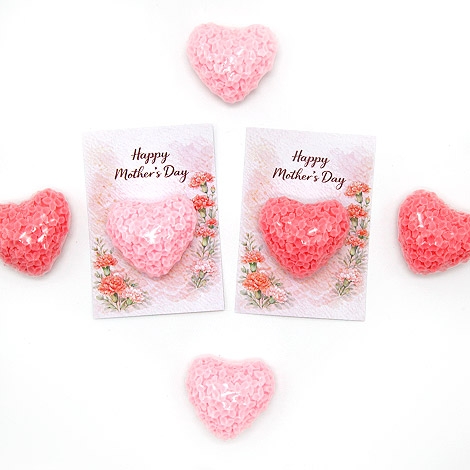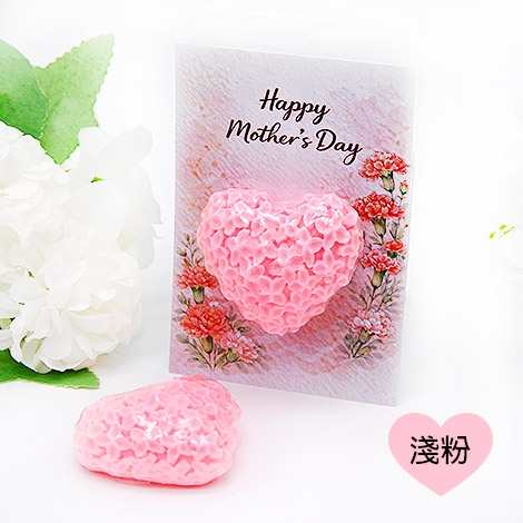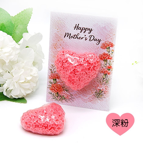 這款花朵愛心手工香皂,以細緻花瓣層層綻放,打造出如花般柔美的愛心造型,搭配印有「Happy Mother’s Day」的溫馨背卡,讓整體更添節日儀式感與心意。