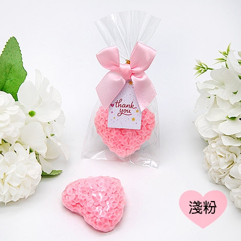 用可愛的小愛心,把滿滿的心意悄悄傳遞出去。這款心意滿滿花漾手工香皂,以細緻花瓣紋理打造立體愛心造型,粉嫩色系溫柔又療癒,看起來就像一份甜甜的小驚喜,讓人一眼就喜歡上。搭配透明包裝與蝴蝶結點綴,再加上Thank You小卡,無論送禮或活動使用都顯得精緻又有心意。