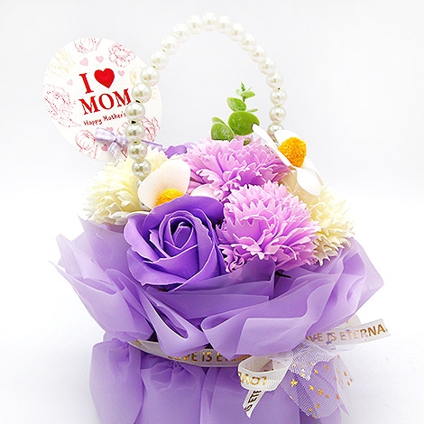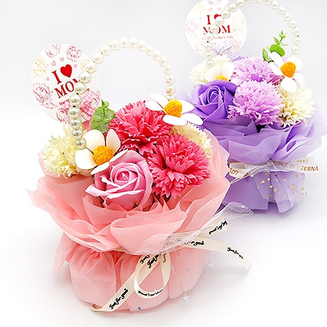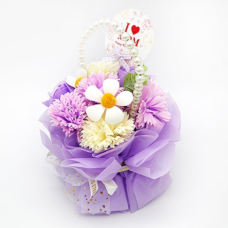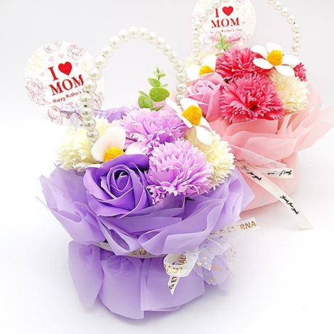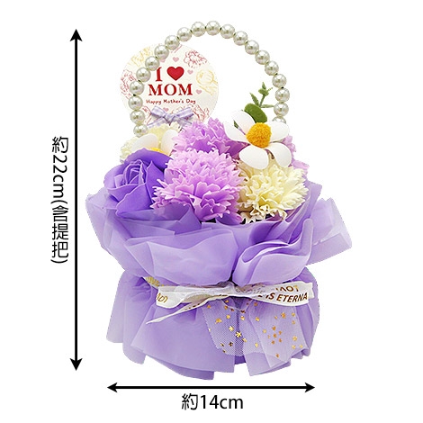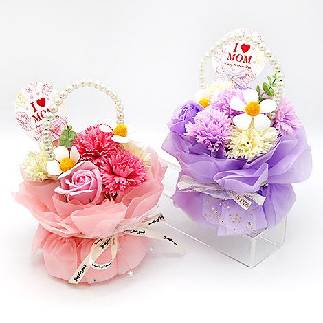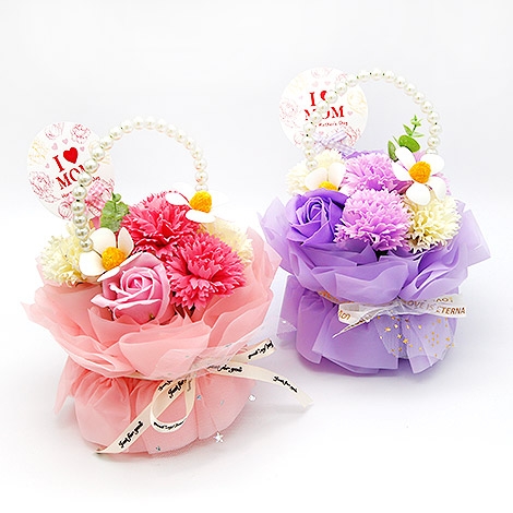 提供粉色與紫色兩款選擇,粉色溫柔甜美,紫色高雅浪漫,無論送給媽媽或長輩,都能挑選最適合她的那一份心意。採用香皂花材質,不僅外型美觀,還帶有淡淡香氣,兼具觀賞與實用性。