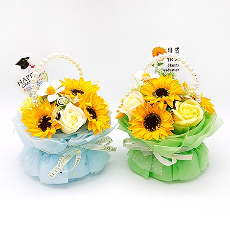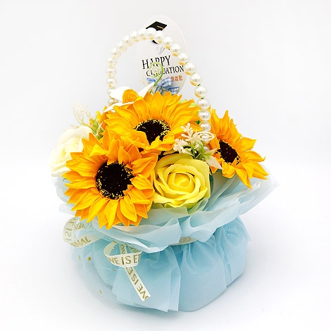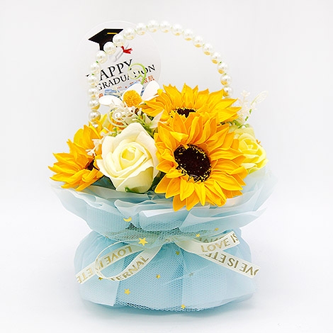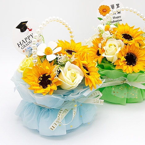 這款畢業向日葵香皂花小盆栽,以象徵希望與勇氣的向日葵為主題,搭配細緻花材與質感花器設計,整體呈現出活力與溫暖兼具的畢業氛圍。