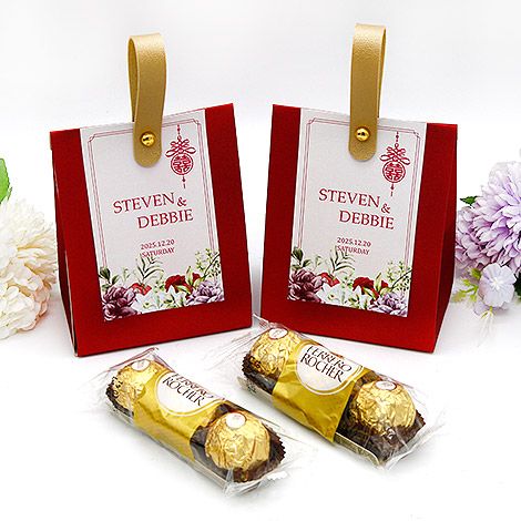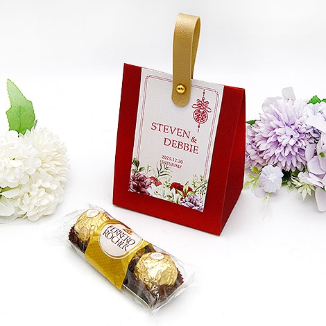內含三顆金莎巧克力,甜而不膩,象徵幸福與分享,是婚禮送客禮的絕佳選擇。
