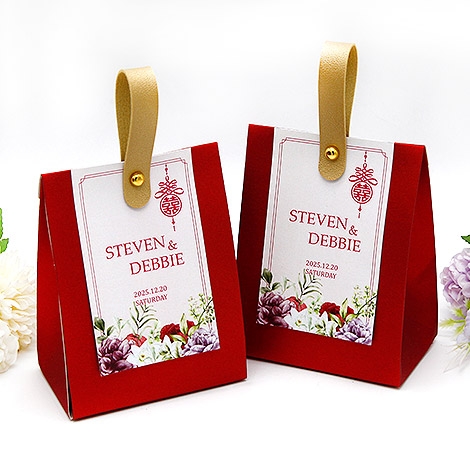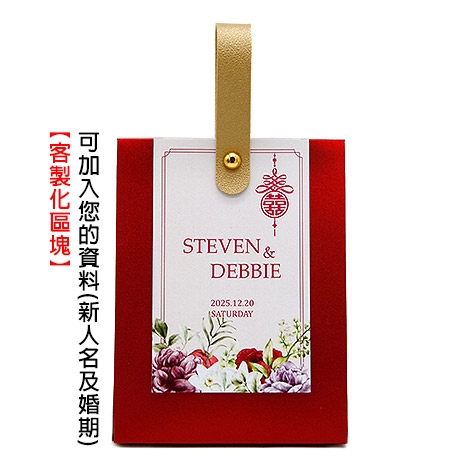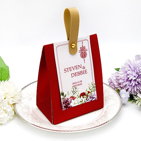 典雅祝福西式客製金莎紅三角禮盒 婚禮小物