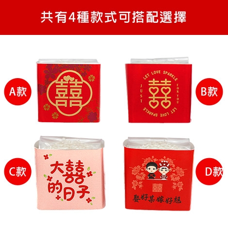提供4款喜氣腰封可自由搭配,風格多元,輕鬆打造專屬婚禮氛圍。腰封為DIY設計,收到後需自行黏貼,簡單完成即可呈現精緻質感。