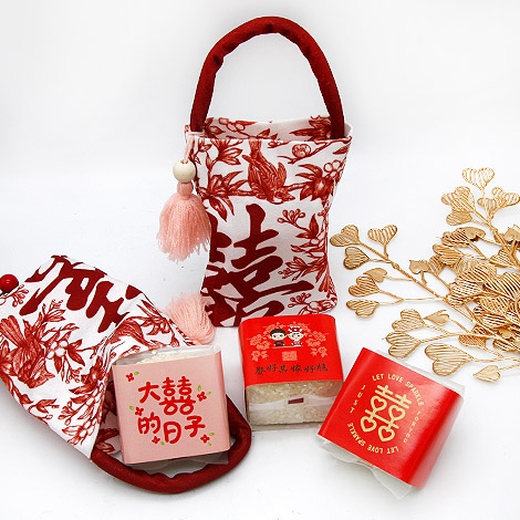 DIY喜氣滿袋囍米提袋禮組 喝茶禮推薦