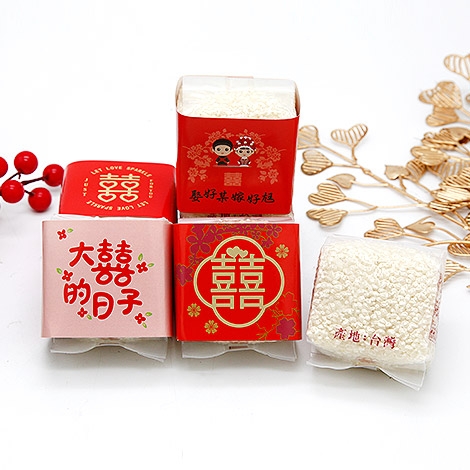 內含兩包150g精選米,寓意「好事成雙、幸福滿滿」,不僅實用,也蘊含祝福意義,讓賓客帶回家的不只是禮物,更是一份好兆頭。