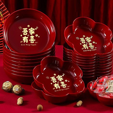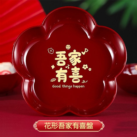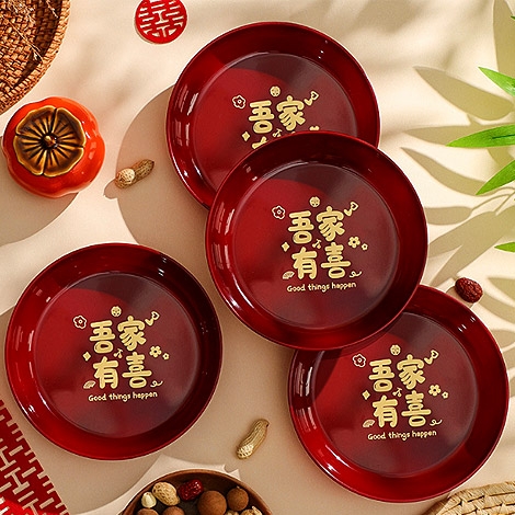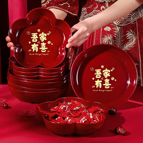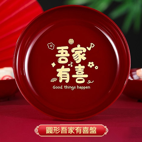 這款「吾家有喜」喜糖盤,以經典大紅色搭配燙金字樣設計,象徵喜事臨門、幸福圓滿,為婚禮與喜宴增添濃厚的節慶氛圍。