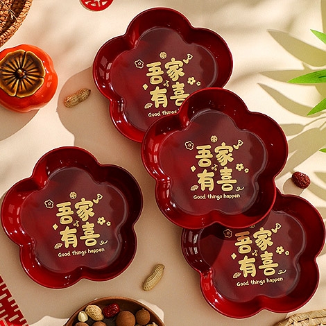 提供花形與圓形兩種款式,造型喜氣又大方,無論擺放喜糖、糖果、堅果或小點心,都能讓桌面更加精緻有層次。