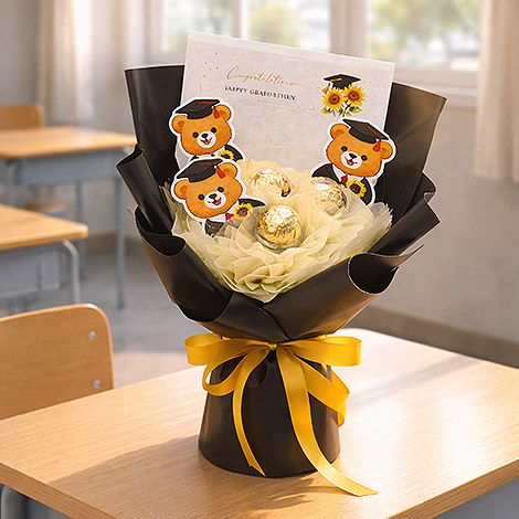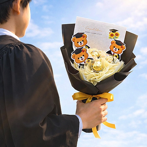 用一束可愛又有心意的花,為畢業時刻留下最溫暖的紀念。療癒系小熊搭配畢業帽造型,象徵成長與祝福,就像陪伴走過青春的重要夥伴,一起迎接人生新的篇章。