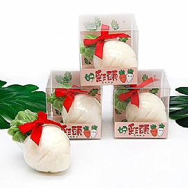 好彩頭,外型圓潤飽滿、潔白細緻,象徵「好彩頭、好兆頭」,寓意吉祥順利、步步高升,是送禮市場中極具話題性的祝賀小物。精緻透明禮盒包裝搭配紅色蝴蝶結,整體質感清新討喜,第一眼就讓人感受到滿滿祝福與心意,特